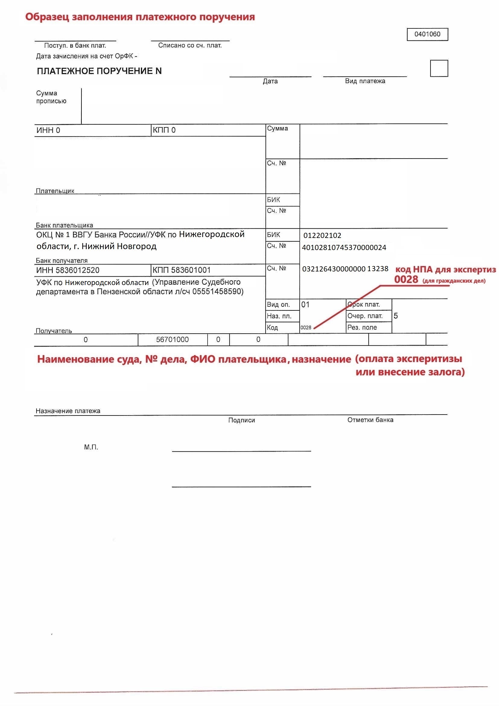 УФК по Нижегородской области (Управление Судебного департамента в Пензенской области л/сч 05551458590)